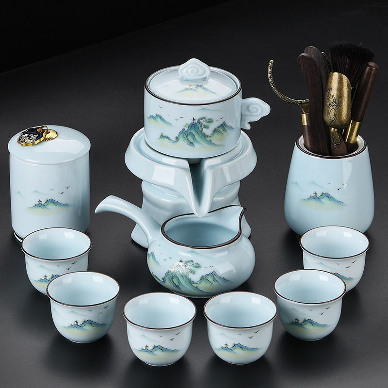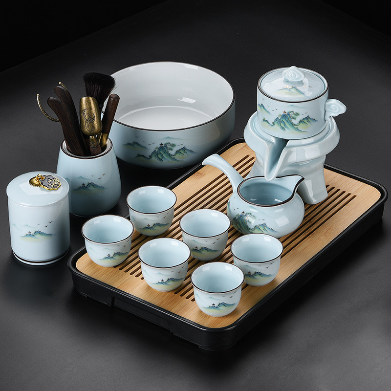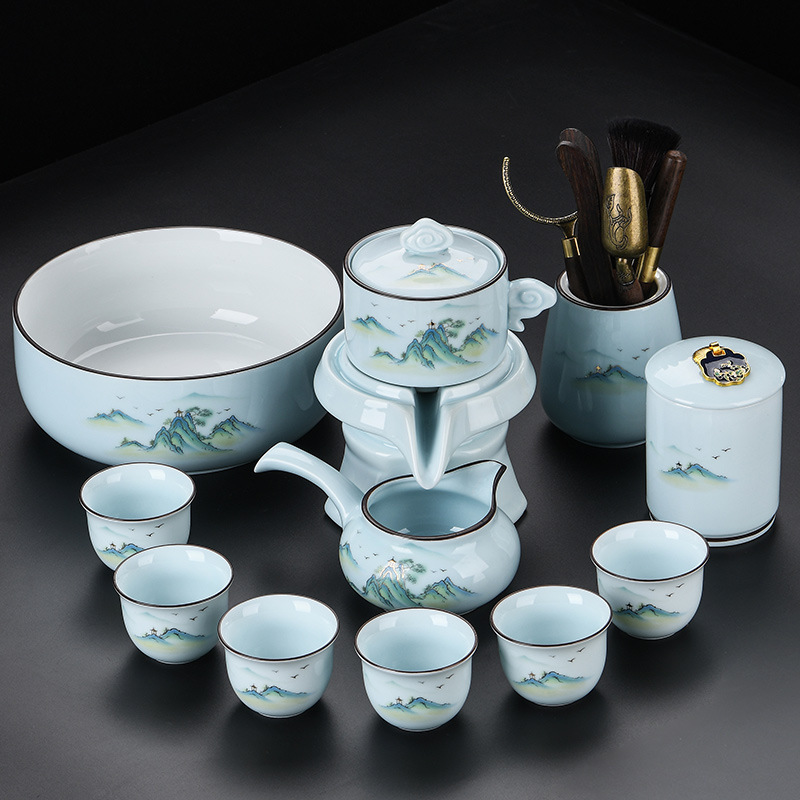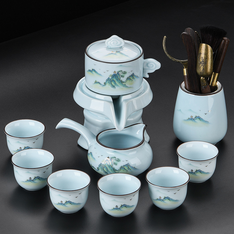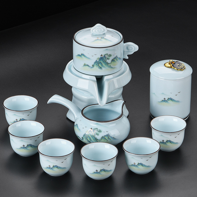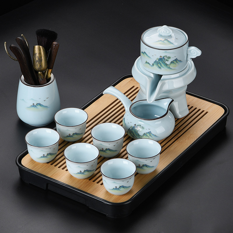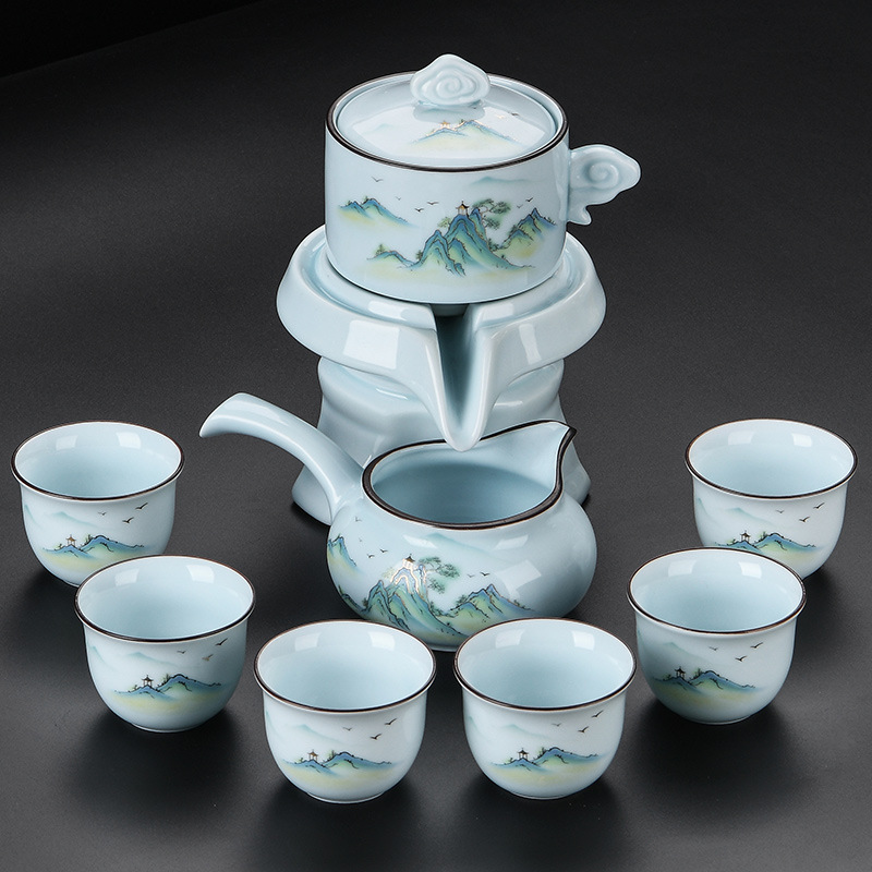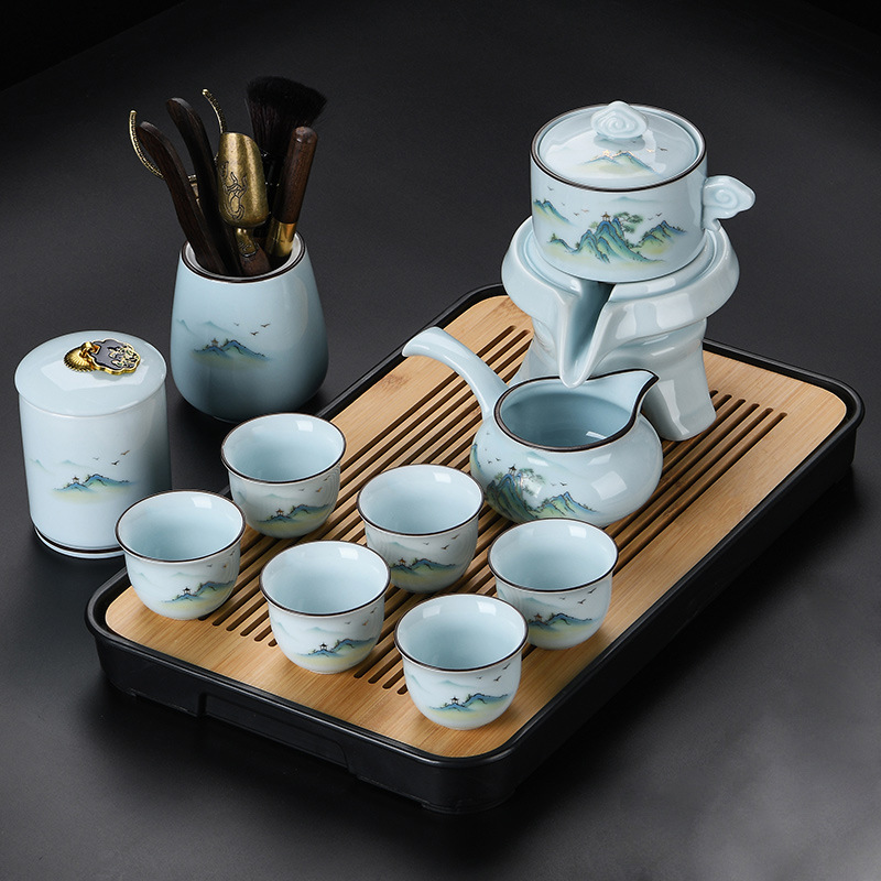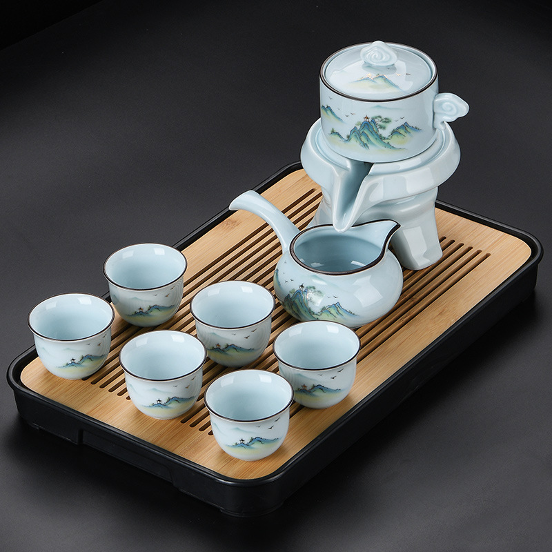 青瓷自动茶具套装家用办公懒人半自动石磨旋转陶瓷泡茶器茶杯整套